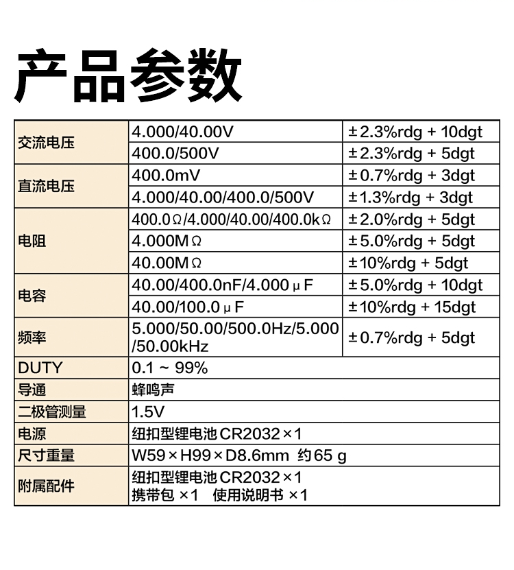 電壓 | 400.0mV~500V |