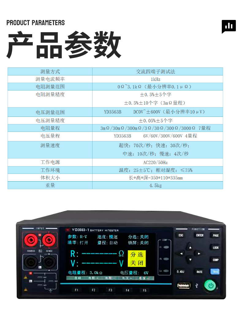 0Ω~3.1kΩ 7量程(最小分辨率0.1μΩ)