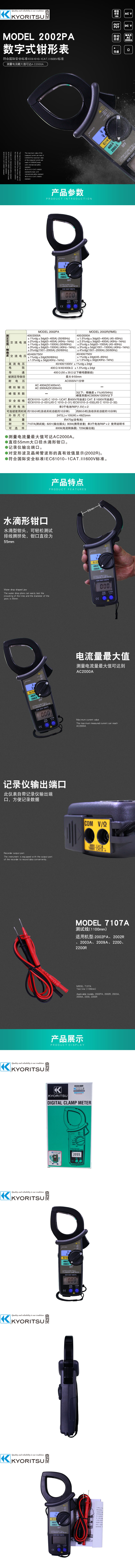訂貨號:KEW2002PA 品牌:日本克列茨(KYORITSU) 類別:電工儀表 / 電力儀器