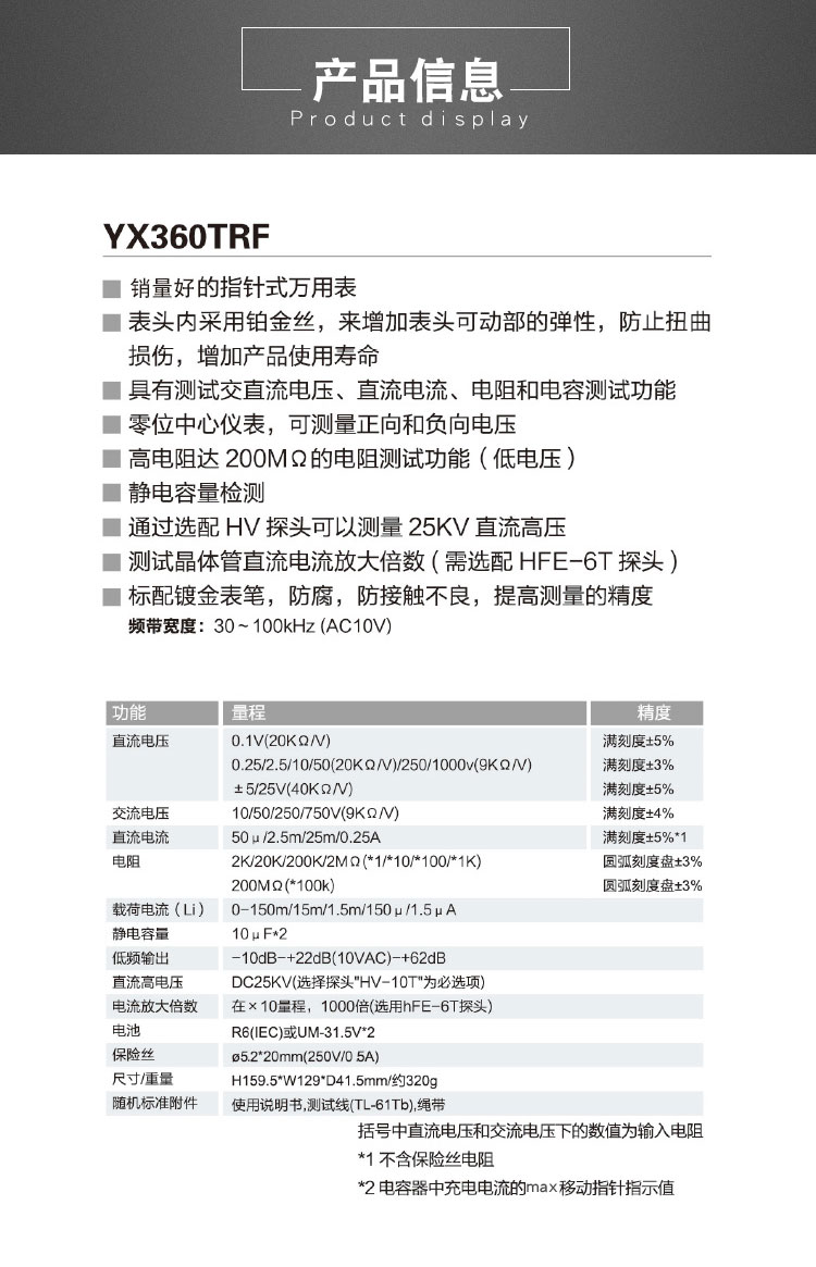 括號中直流電壓和交流電壓下的數值為輸入電阻 |