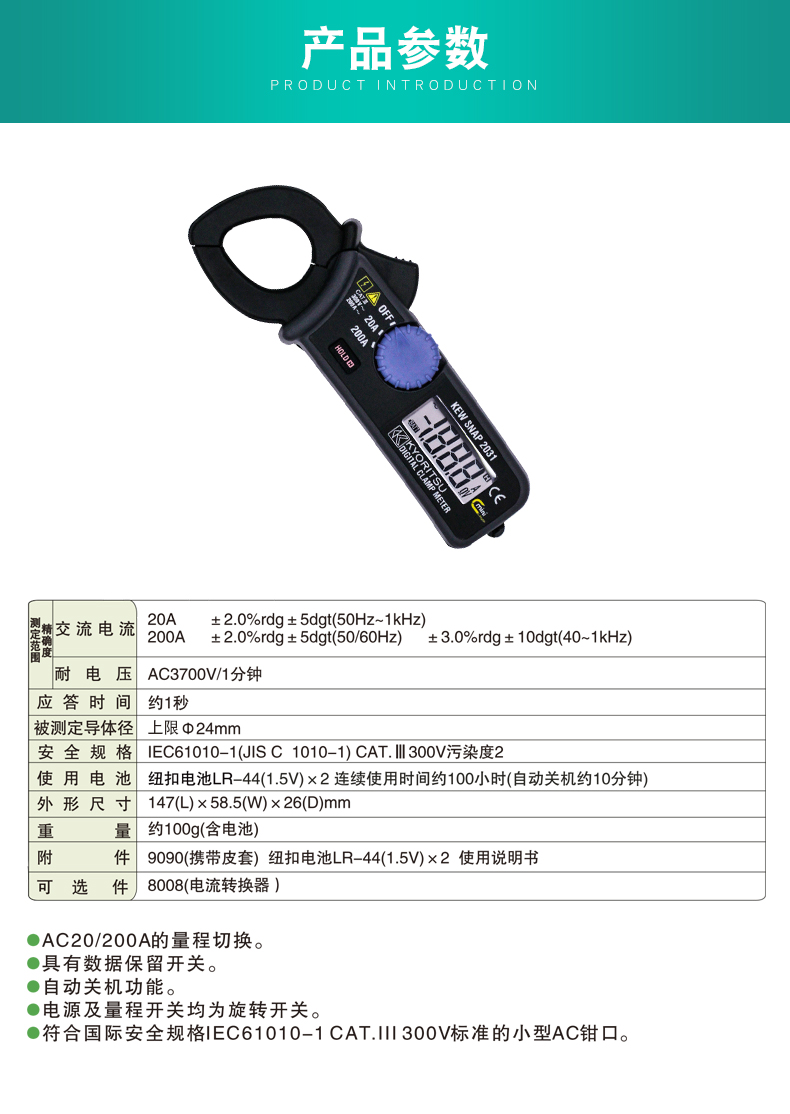訂貨號:KEW2031 品牌:日本克列茨(KYORITSU) 類別:電工儀表 / 電力儀器