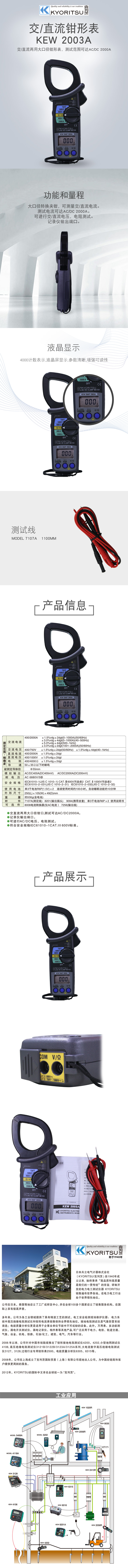 訂貨號:KEW2003A 品牌:日本克列茨(KYORITSU) 類別:電工儀表 / 電力儀器