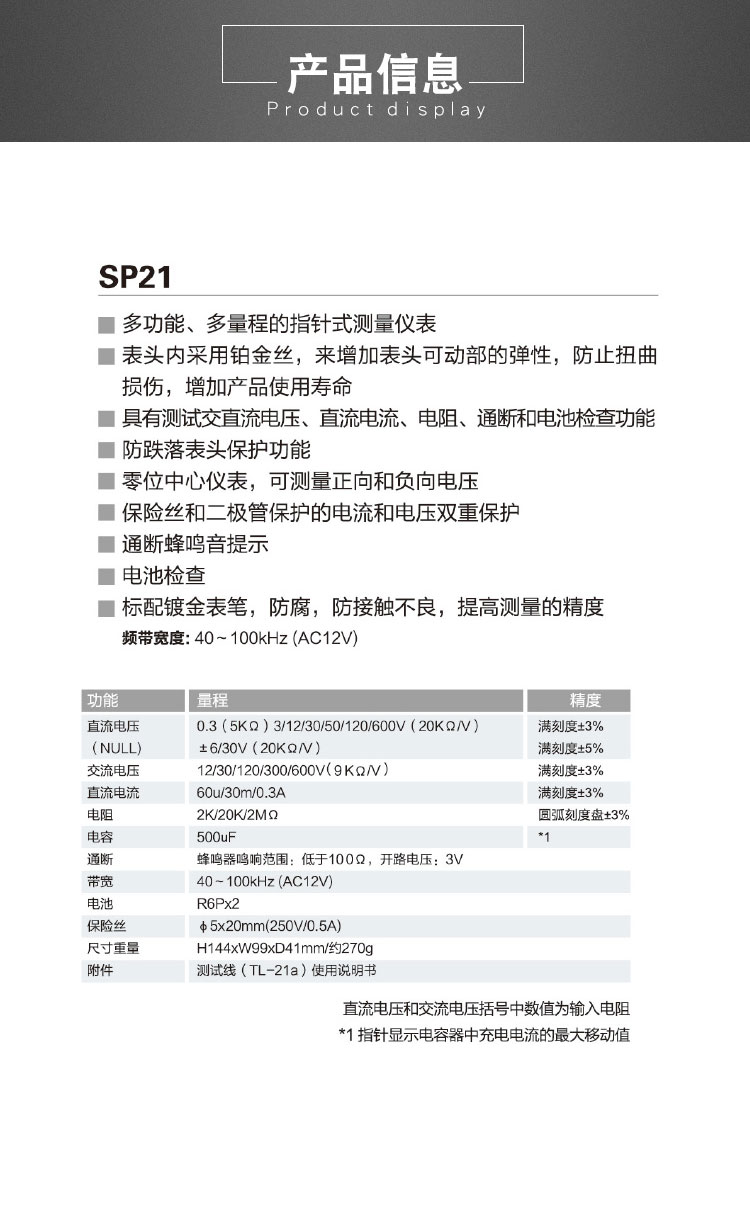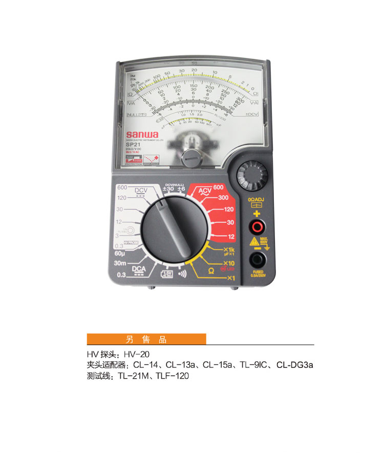 0.3(5KΩ)/3/12/120/600V(20KΩ/V) ±6/30V (20KΩ/V) |