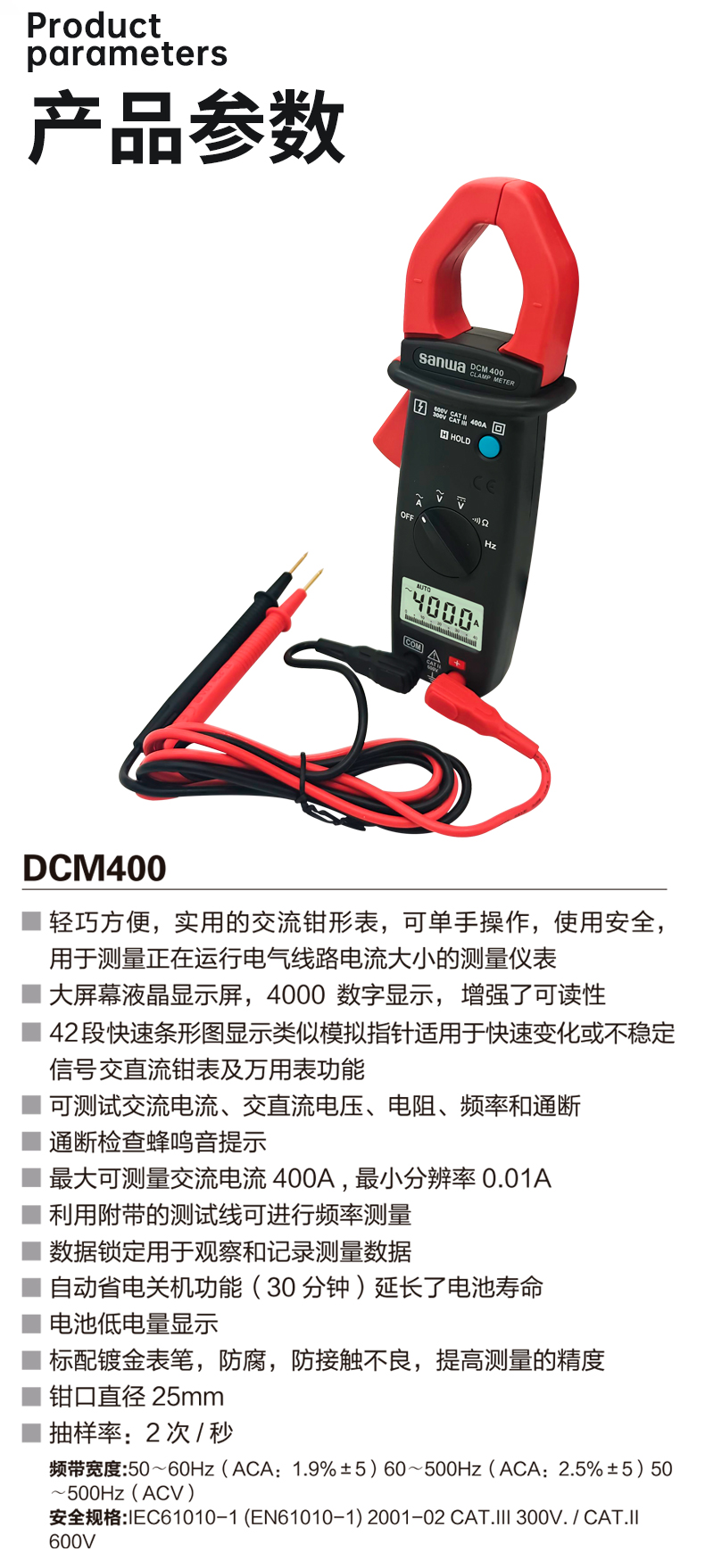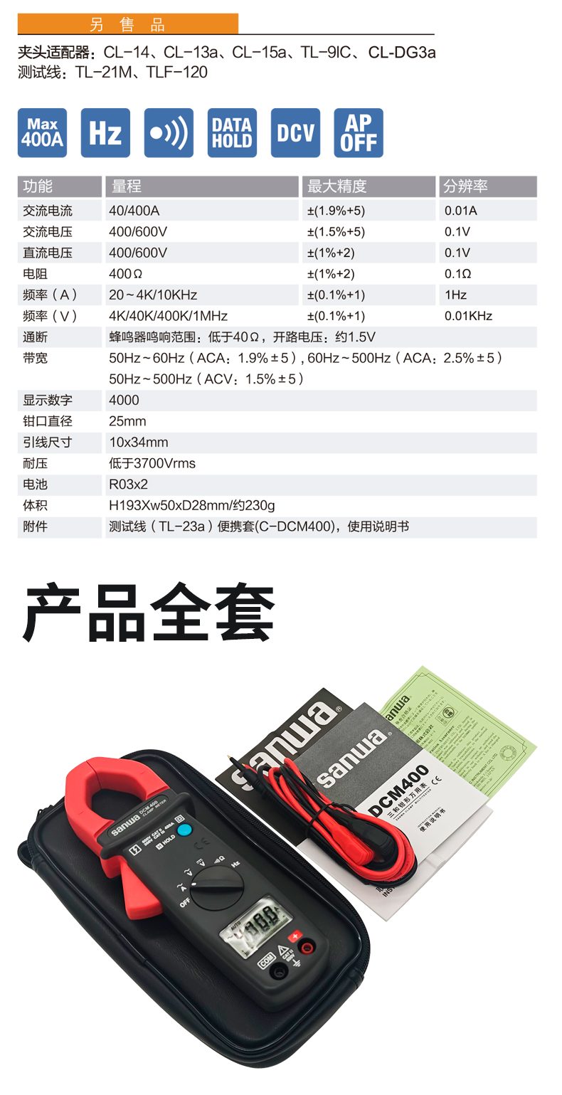 訂貨號(hào):DCM400 品牌:日本三和(SANWA) 類別:電工儀表 / 電力儀器