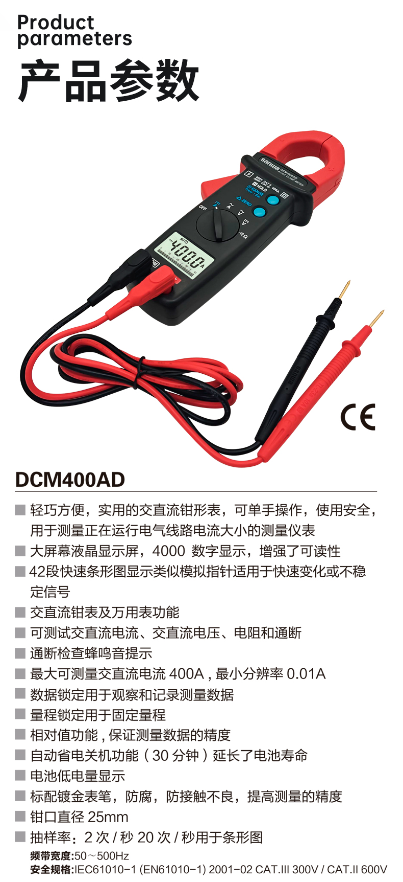 訂貨號:DCM400AD 品牌:日本三和(SANWA) 類別:電工儀表 / 電力儀器