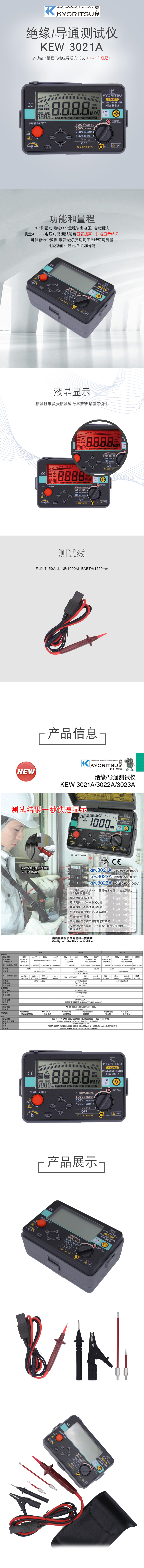 訂貨號:KEW3021A 品牌:日本克列茨(KYORITSU) 類別:電工儀表 / 電力儀器