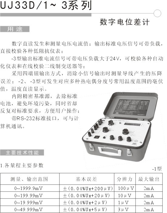 UJ33D-1~3數(shù)顯電位差計