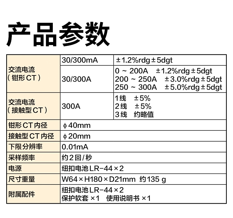 附有無需鉗住被測對象亦可測量電流的接觸型CT,分辨率0.01mA
