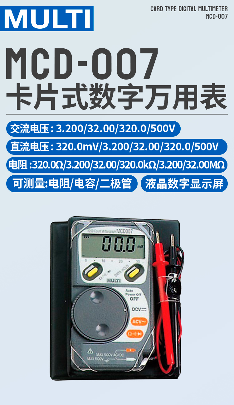 日本萬用袖珍數字萬用表MCD-007